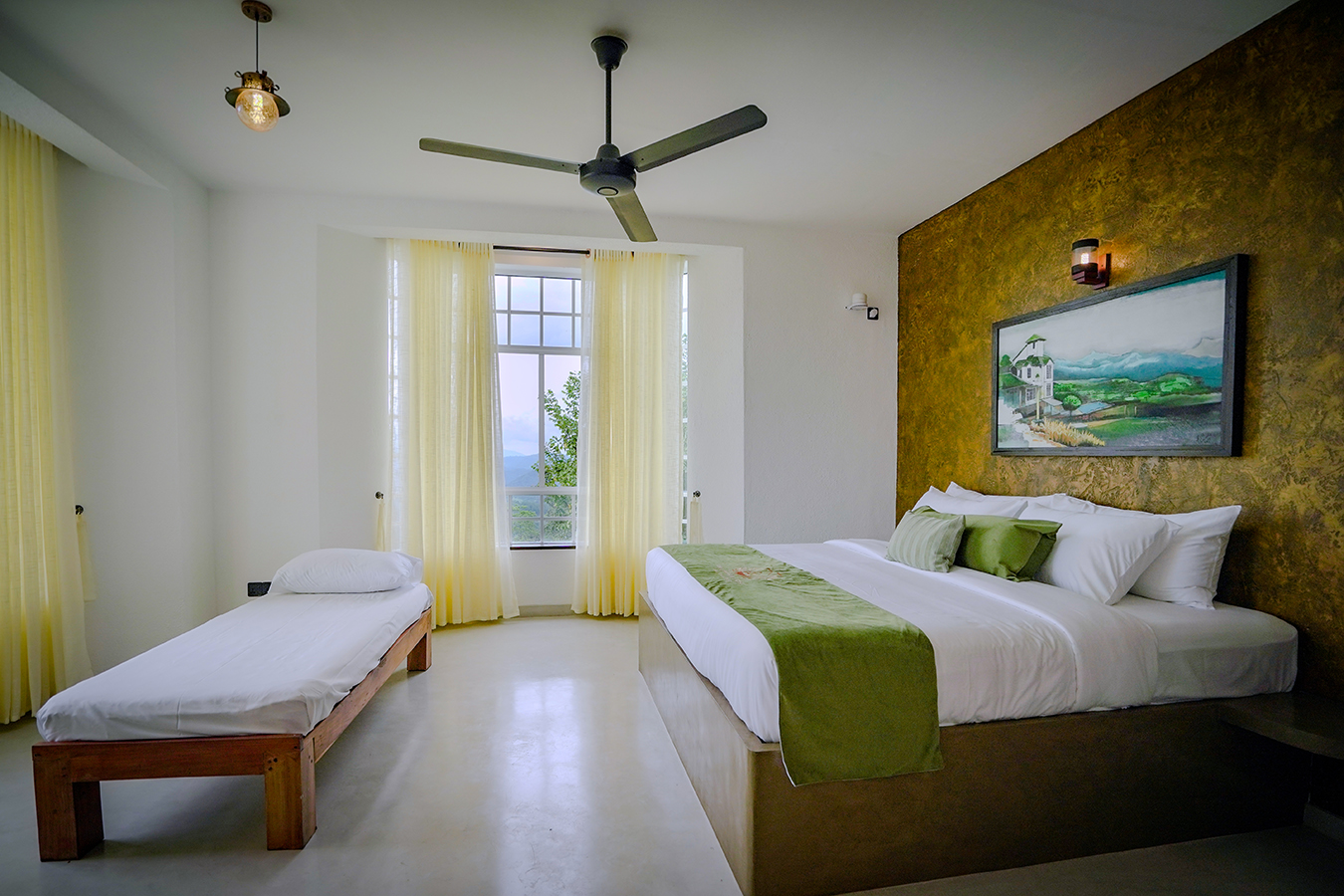 Tailored for couples or small families, Hiru-Basme blends colonial charm with modern comforts in a space designed for rest and reflection. Guests often end their day here wrapped in soft twilight, sipping Ceylon tea as the sun dips behind the mountains. Suite Hiru-Basme is where warmth, comfort, and breathtaking views come together for an unforgettable hilltop escape.