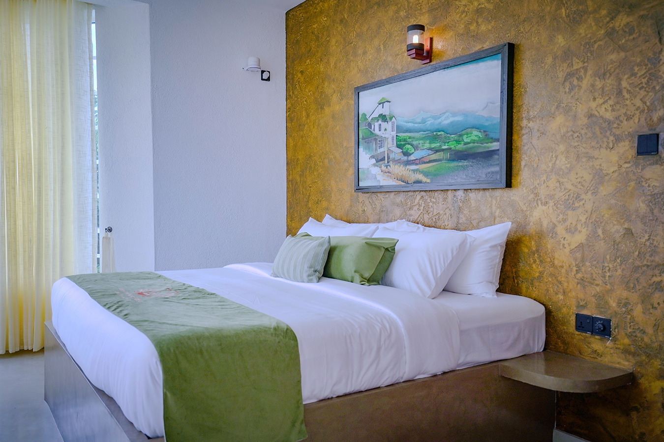 Awash in golden light, Suite Hiru-Basme, named after the Sinhala phrase for “sun-kissed” is a deluxe room perfectly positioned to capture the majestic beauty of Kandy’s sunsets. As the day fades, the skies transform into a canvas of warm hues, seen through the suite’s panoramic windows overlooking misty hills and pine-covered valleys.
